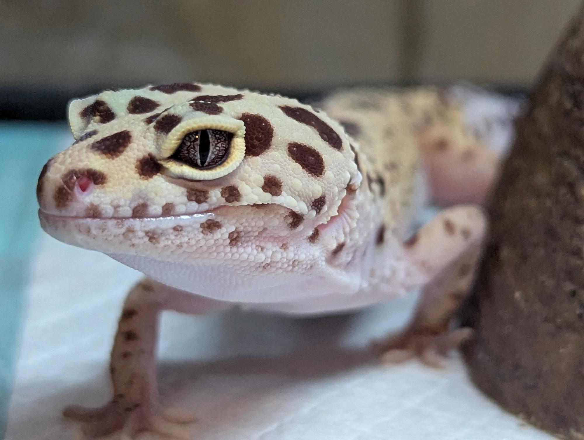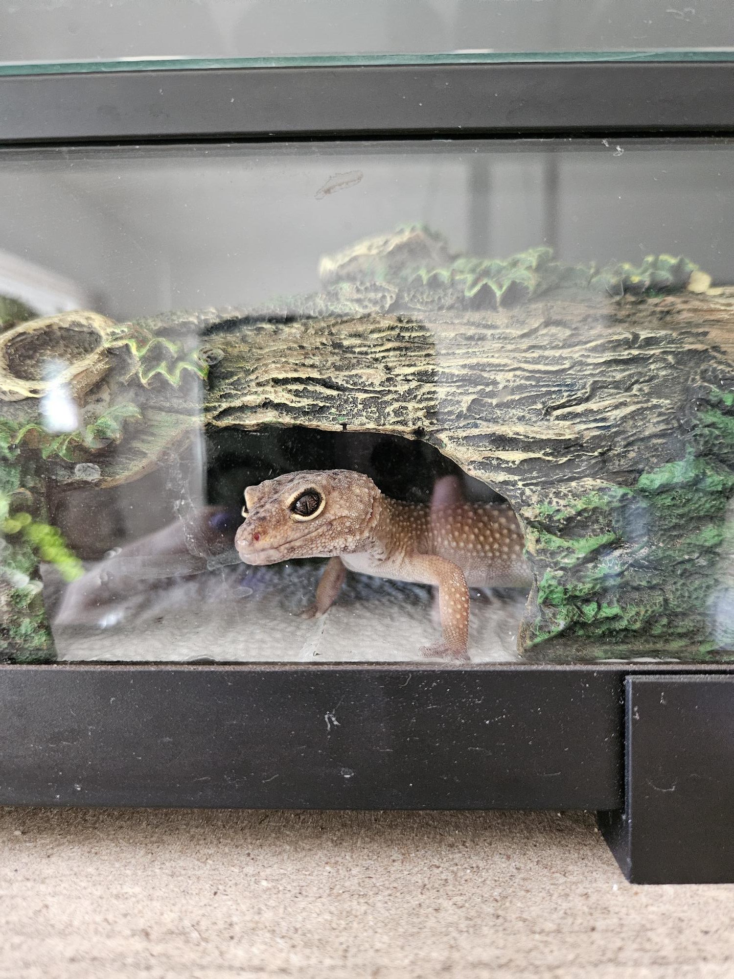 Meet Lorraine! Lorraine was housed with another leopard gecko at her previous home, so she is a pet who will need to be monitored to keep her weight healthy. She is our longest resident - Shes been in foster since March of 2024. Lorraine will need a minimum of a 40 gallon enclosure for adoption.