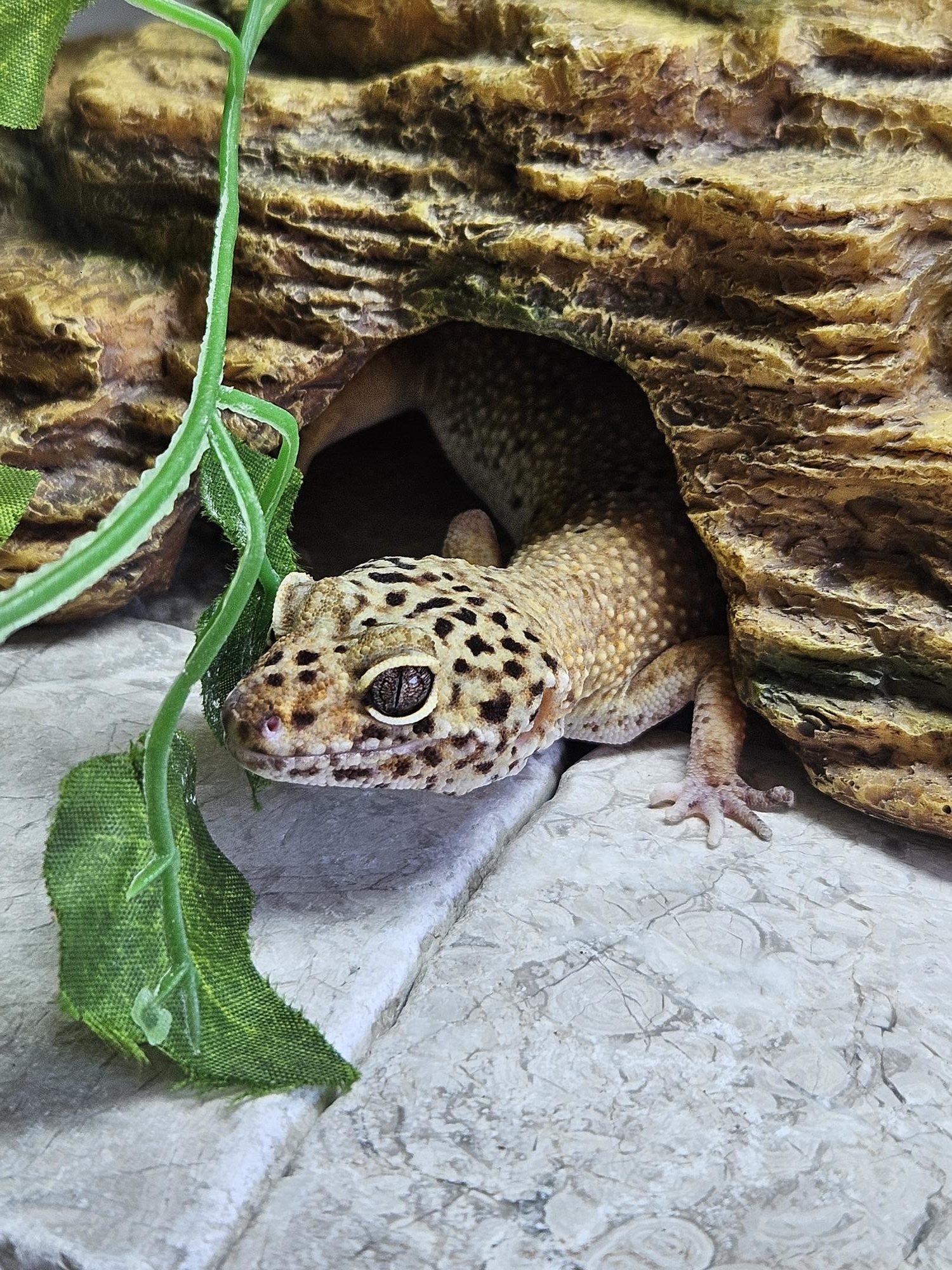 Meet Dorothy—aka Dottie! Dottie is a striking leopard gecko with gorgeous speckled markings and a personality to match. She’s a little on the spicy side and prefers to admire you from the comfort of her own space rather than being handled—but that doesn’t slow her down one bit! This girl is full of energy, always exploring, and she never turns down a good meal. If you’re looking for an active, beautiful gecko to watch and care for (without all the snuggles), Dottie might just be your perfect match. Dottie needs a minimum of a 40 gallon enclosure for adoption.