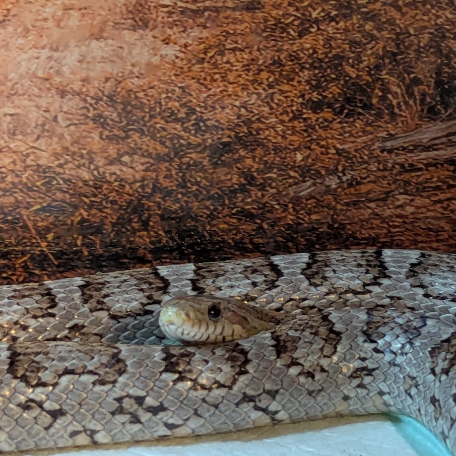 Meet Speckles! Speckles is a calm, curious girl with a beautiful speckled pattern and a gentle nature. She’s shy at first but settles in nicely with a patient handler. Healthy, eating well, and ready for a cozy forever home where she can be admired and loved! Speckles is available for adoption with her 40 gallon enclosure!