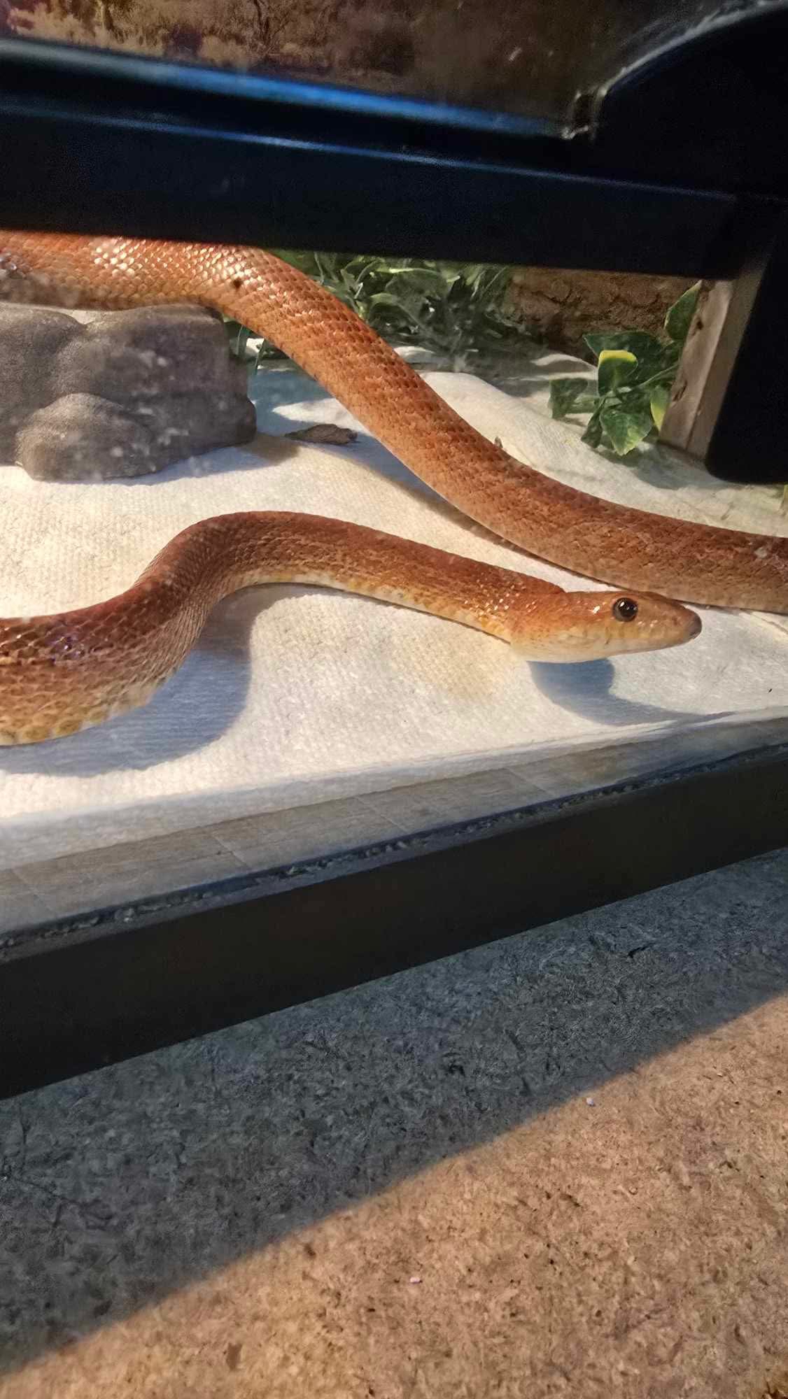 Meet Cleetus! Cleetus is a striking red corn snake with richly colored scales that make a bold impression. This calm and curious snake enjoys exploring! Cleetus is a consistent eater and is currently just slightly under optimal weight—but with regular meals and continued care, reaching a healthy size will be no problem. This gorgeous snake is alert, active, and ready for a forever home! Cleetus will need a minimum of a 75 gallon enclosure for adoption.