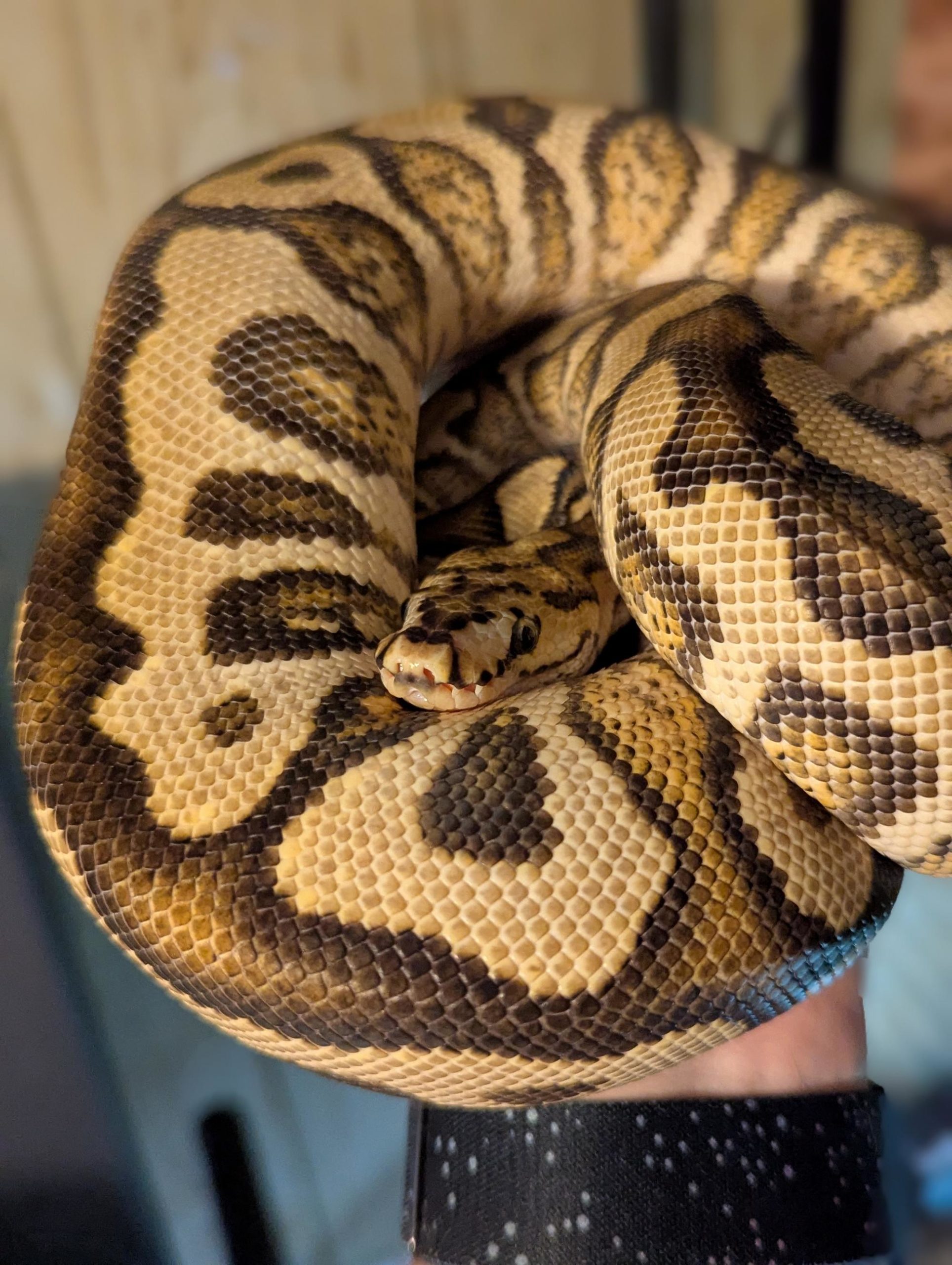 Meet Sunflower! Sunflower is a gentle, curious ball python with a warm personality and a knack for making people smile. She’s as sweet as her name suggests—calm when handled, and always ready to explore her surroundings in the silliest little ways. While Sunflower wasn’t the most enthusiastic eater in my care, she’s healthy and would thrive in a patient, experienced home that can help her settle into a good routine. With her kind temperament and quirky charm, Sunflower is sure to brighten up your days just like a sunny summer bloom.